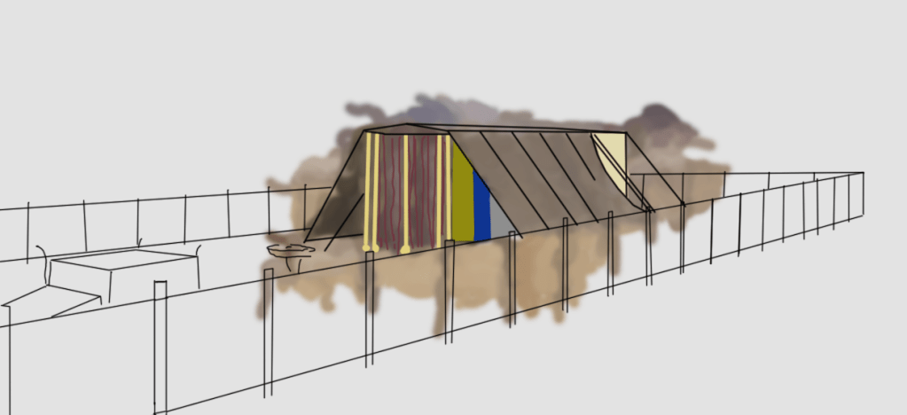 Een ontwerp maken voor een ruimte van stilte heb ik gedaan met de tabernakel als inspiratiebron. De tabernakel is de eerste woning waar God wilde wonen bij de mensen. Hij beschreef het ontwerp als een architect aan de mens en die beschrijving kunnen we lezen in Exodus 26. Om dit als bron te gebruiken was erg inspirerend voor mij, omdat je elementen pakt uit een ontwerp die door God zelf is ontworpen. Een plek waar je echt de tijd nam om God te offeren. Voor Hem je tijd vrij te maken en stil te staan bij wie Hij voor je is. In die tijd waren de Israëlieten net bevrijd uit Egypte. Een plek waar de Israëlieten als slaaf gewerkt hebben. Ze waren God enorm dankbaar en namen veel tijd voor Hem. Dit kan je ook door trekken naar de tijd van nu. Christus heeft zichzelf gegeven aan het kruis waardoor wij bevrijd zijn.