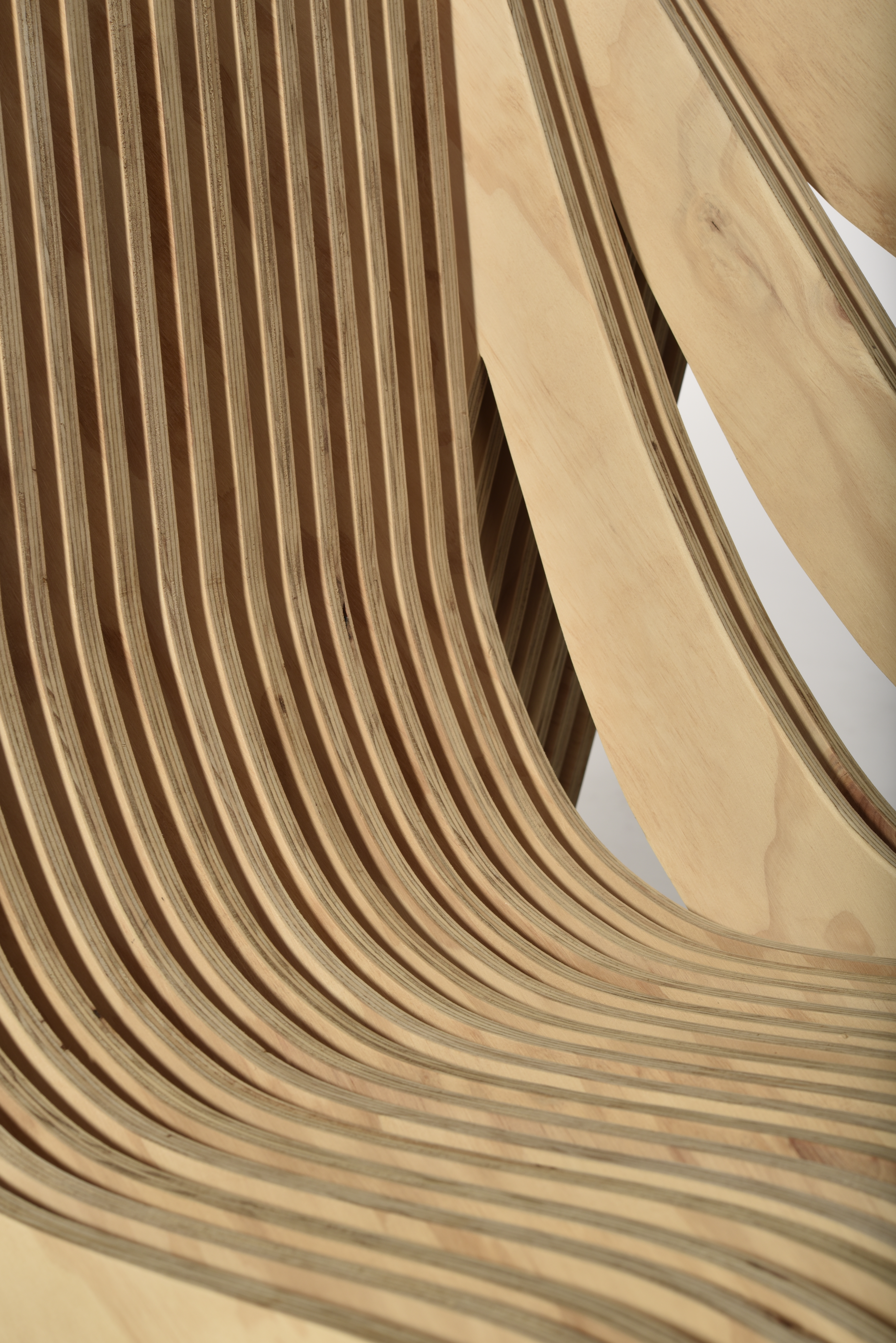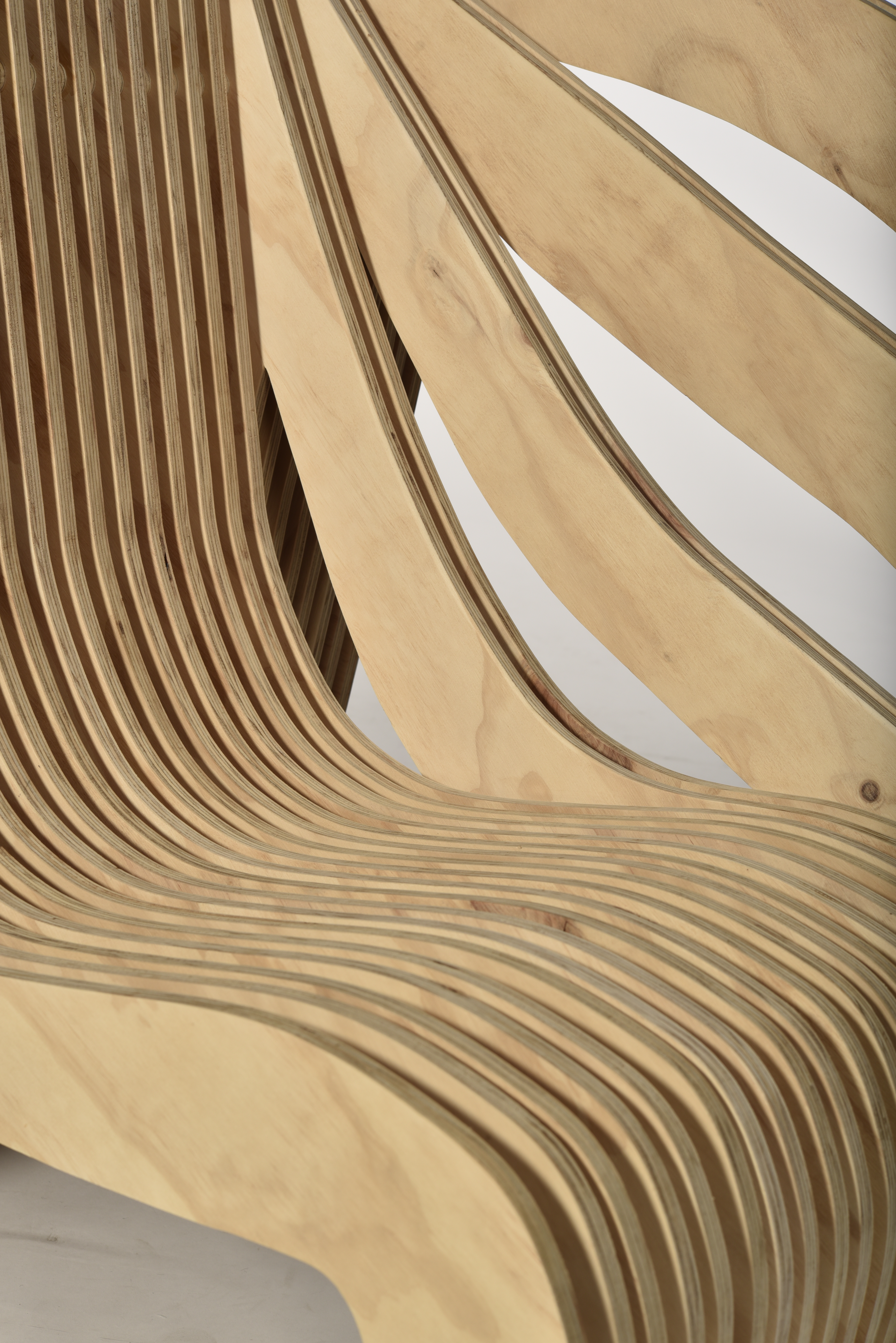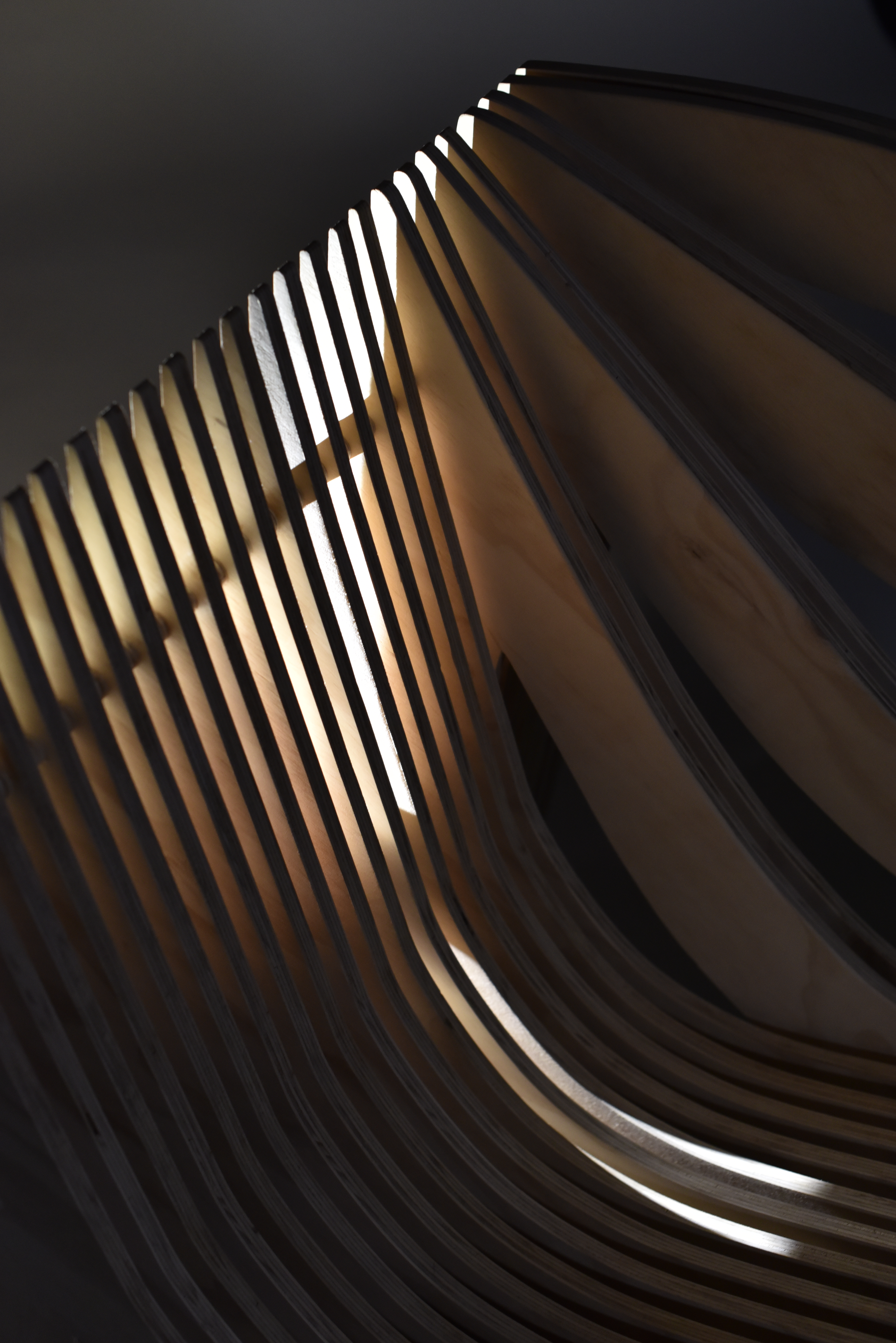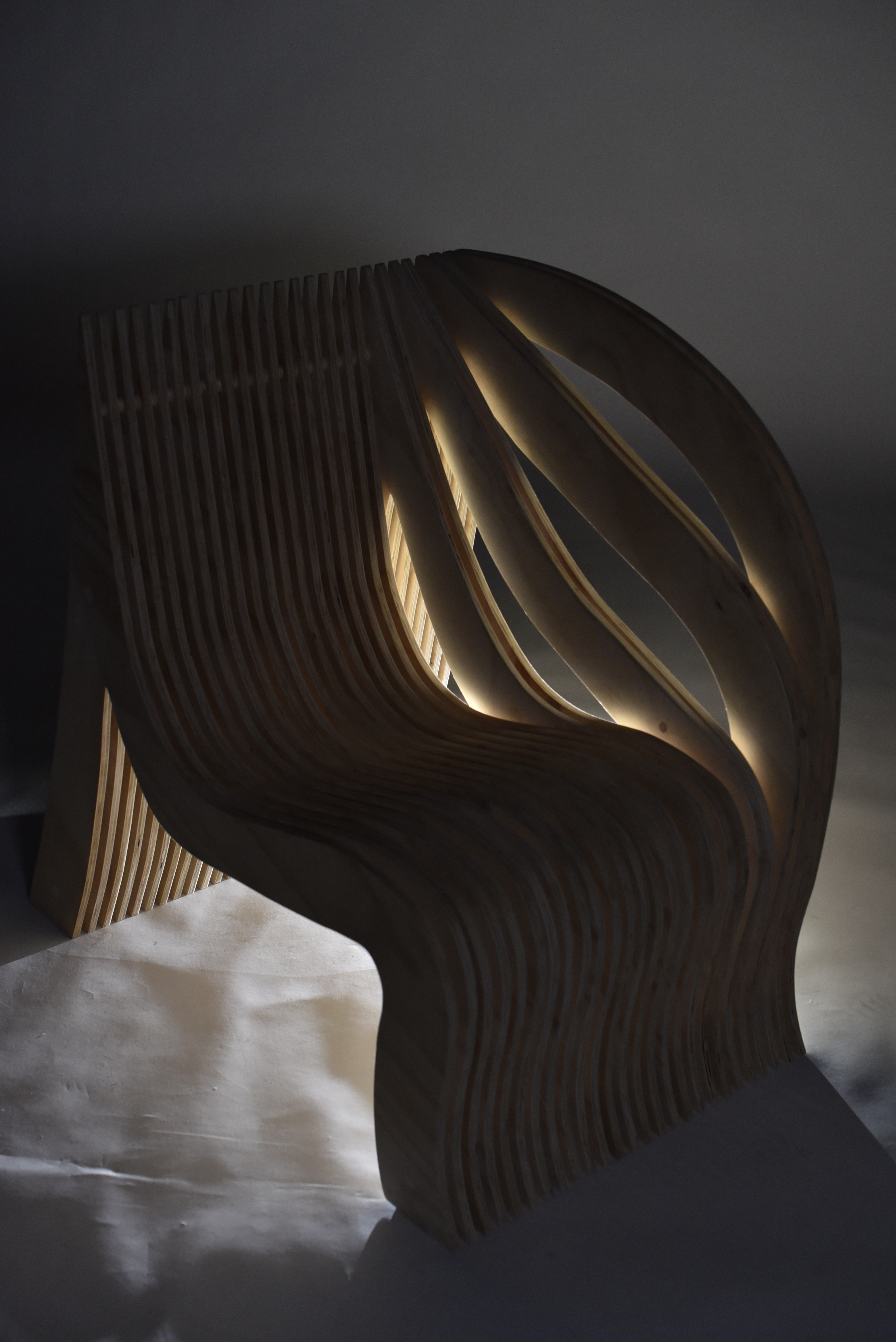 Ik ben dit gaan onderzoeken door een stoel te ontwerpen die dit spel activeert. De organische vorm speelde hierin een belangrijke rol, omdat schaduw altijd vloeiende en organische lijnen aanneemt door de objecten waarop het licht valt. De uitdaging was om deze vormen zo te vertalen dat ze niet alleen mooi, maar ook functioneel zijn.